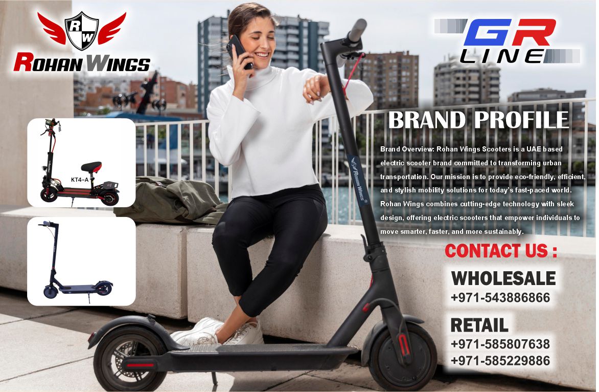 Rohan Wings Scooters is a UAE based electric scooter brand committed to transforming urban transportation. Our mission is to provide eco-friendly, efficient, and stylish mobility solutions for today’s fast-paced world. Rohan Wings combines cutting-edge technology with sleek design, offering electric scooters that empower individuals to move smarter, faster, and more sustainably.
