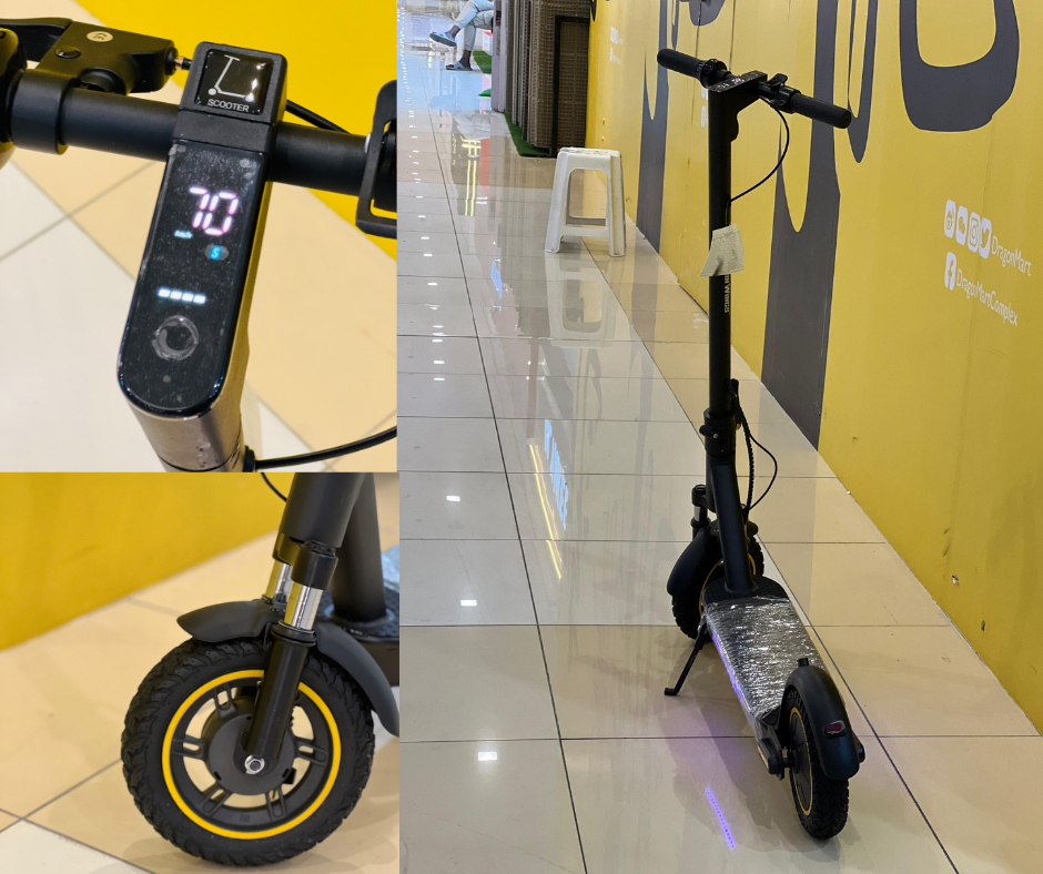 The GMAX-1 delivers a powerful and comfortable ride with its 350W brushless motor and 36V 13Ah LT battery. With a top speed of 32 km/h and a 27 km range, it’s built for efficiency. Its 10-inch tires and front shock absorption ensure a smooth and stable journey, while Bluetooth connectivity adds smart control to your ride.